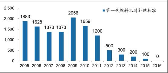 第一代燃料乙醇補貼標準不斷下降直至取消