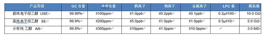 在最新的鋰電池工業負極材料制造工藝過程中,所使用的乙醇(80%乙醇水溶液)為溶劑,溶解金屬草酸鹽;為避免超過國家標準量的金屬離子與陰離子在負極材料的殘留,因此對所使用的乙醇金屬離子與陰離子濃度要求非常高,根據目前所掌握的負極材料制造文獻推算,所使用的乙醇溶液,至少要達到電子級乙醇(EL級[100ppb陽離子溶度])相當或更高的SE級。